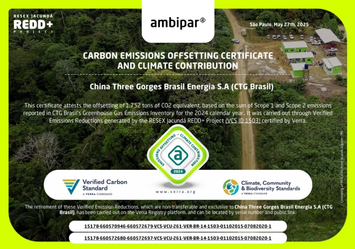 近日,三峽巴西公司連續(xù)第六年獲得碳中和認(rèn)證,實現(xiàn)2024年度100%碳中和。同時,三峽巴西公司再度榮膺溫室氣體核算體系(“溫室氣體協(xié)議書”)金印章——這一巴西氣候管理領(lǐng)域的最高榮譽,充分展現(xiàn)了三峽巴西公司在溫室氣體排放量化、管理與信息披露方面的專業(yè)水準(zhǔn)與高度透明。