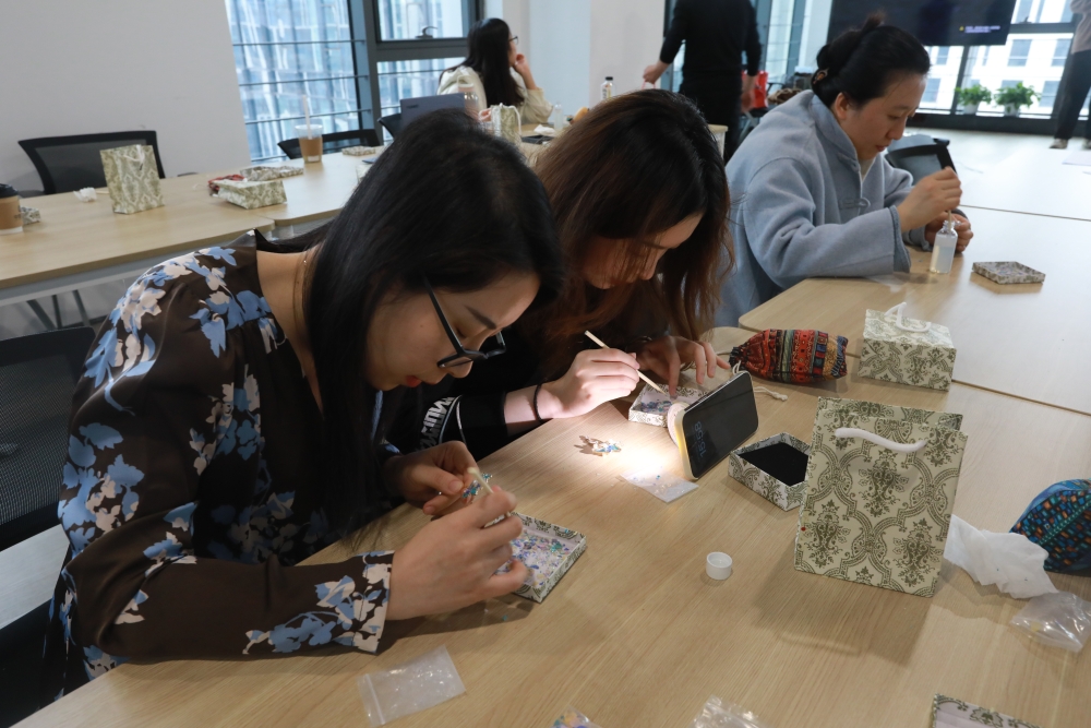 為慶祝第115個“三八”國際婦女節,豐富女職工的精神文化生活,3月7日下午,三峽國際工會組織開展“非遺傳承巾幗迎春”浸烙葫蘆、螺鈿手作活動。公司工會副主席、女工委員會主任葛素娟出席活動并講話,總部各部門、直屬機構60余名女職工參加活動。
